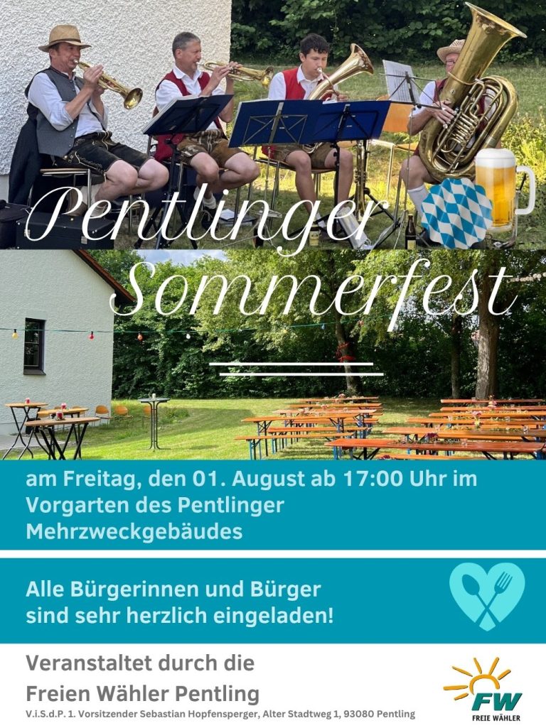 Alle Bürgerinnen und Bürger sind herzlich eingeladen zum Pentlinger Sommerfest am 1. August 2025 im Vorgarten des Pentlinger Mehrzweckgebäudes.